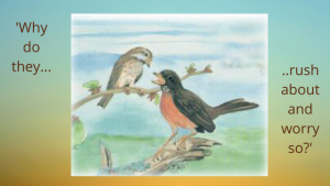 “What?” I angrily asked the two birds a few mornings ago while they looked in at me, outside my window.